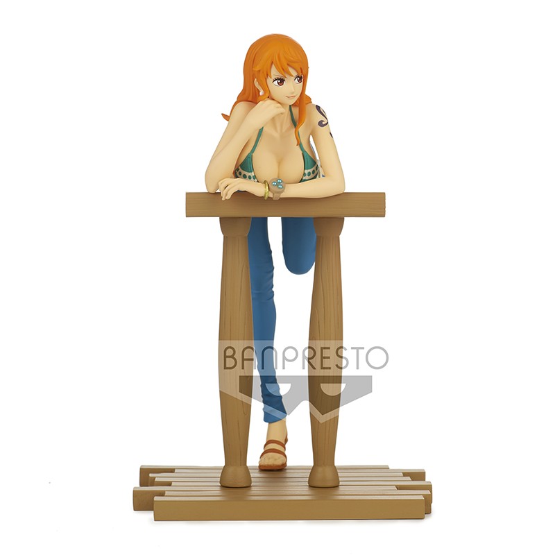 anime series comes a figure of Nami! She has a gentle smile and is leaning on the railing of the ship. She stands approximately 6.30 inch tall and is recreated in great detail. Be sure to add her to your collection!