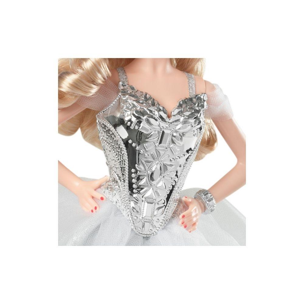 It's a joyous time of year, where everything seems to shine and sparkle with the magic of the holidays. Dressed for the occasion, Barbie Merry Christmas 2021 doll shines in a stunning dress with gathered sleeves at the shoulders and a metallic bodice that shines with sculpted "gemstones". Its full skirt shimmers silver, completed by a voluminous tulle peplum. Silver "pearl" earrings, sparkling eye makeup, and bold red lips complete her glamorous look. May your 2021 Merry Christmas Barbie doll bring a glow of peace and love to you and your loved ones throughout this wonderful season. In packaging that is ideal for presentation, this collectible Merry Christmas 2021 Barbie doll makes a great gift for ages 6 and up. Includes 1 doll stand and 1 certificate of authenticity. The doll does not stand up on its own. Colors and patterns may vary.