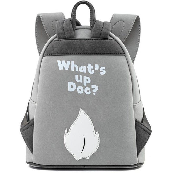 He sure looks sweet and innocent but can your collection of Looney Tunes handle this trickster rabbit? Bugs makes an appearance as the Looney Tunes Bugs Bunny Cosplay Mini Backpack. This backpack makes a great cosplay accessory and an awesome everyday bag for fans of the rascal rabbit. The Looney Tunes Bugs Bunny Cosplay Mini Backpack is made of faux suede with vegan leather (polyurethane) trim. Bag has adjustable shoulder straps, sturdy metal hardware, and features: applique, printed, and enamel zipper charm details. Take note of the coordinating design of the inside lining fabric.