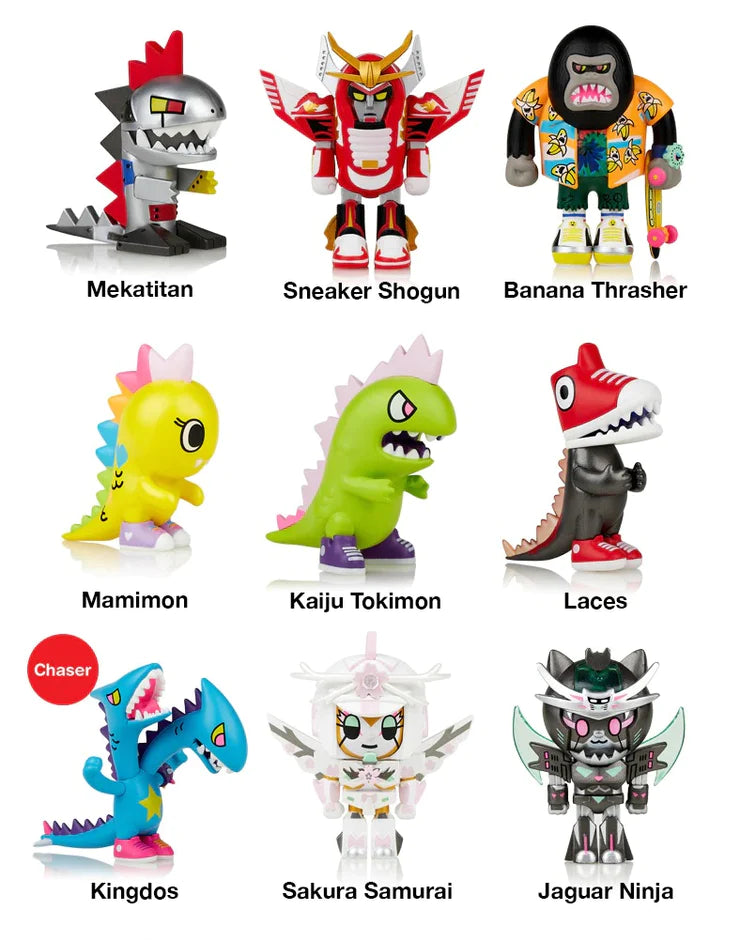 - Characters include: Mekatitan, Mamimon, Kaiju Tokimon, Kingdos (chaser!), Laces, Sakura Samurai, Jaguar Ninja, Sneaker Shogun and Thrilla Gorilla