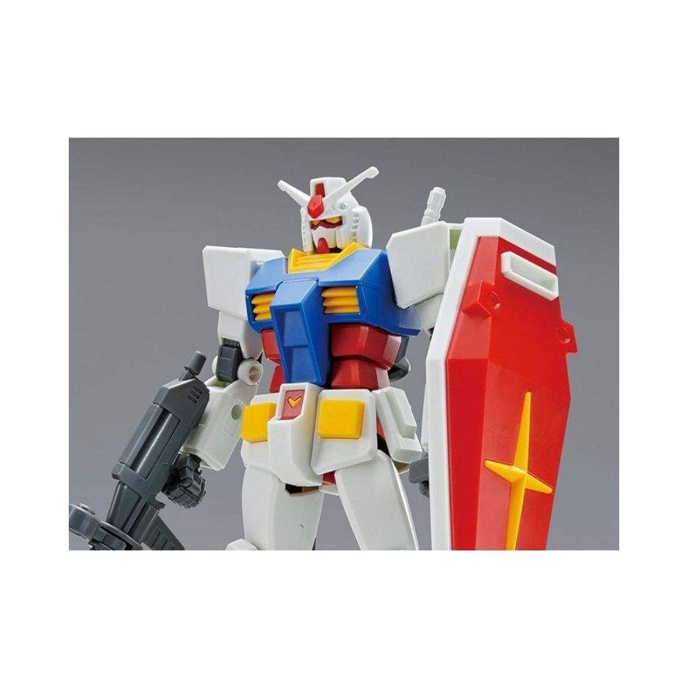 The Entry Grade RX-78-2 Gundam, based on the anime series Mobile Suit Gundam, is the ultimate introduction item for GunPla. Consisting of only 74 parts, the plastic is color molded requiring no paint, snaps together requiring no glue, uses easy twist off parts requing no tools, and now doesn't even require stickers for tiny details!  The RX-78-2 Gundam comes armed with a beam rifle and shield.