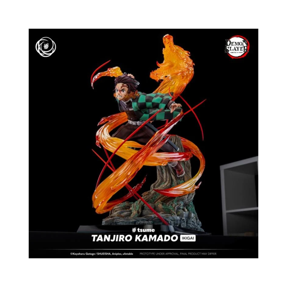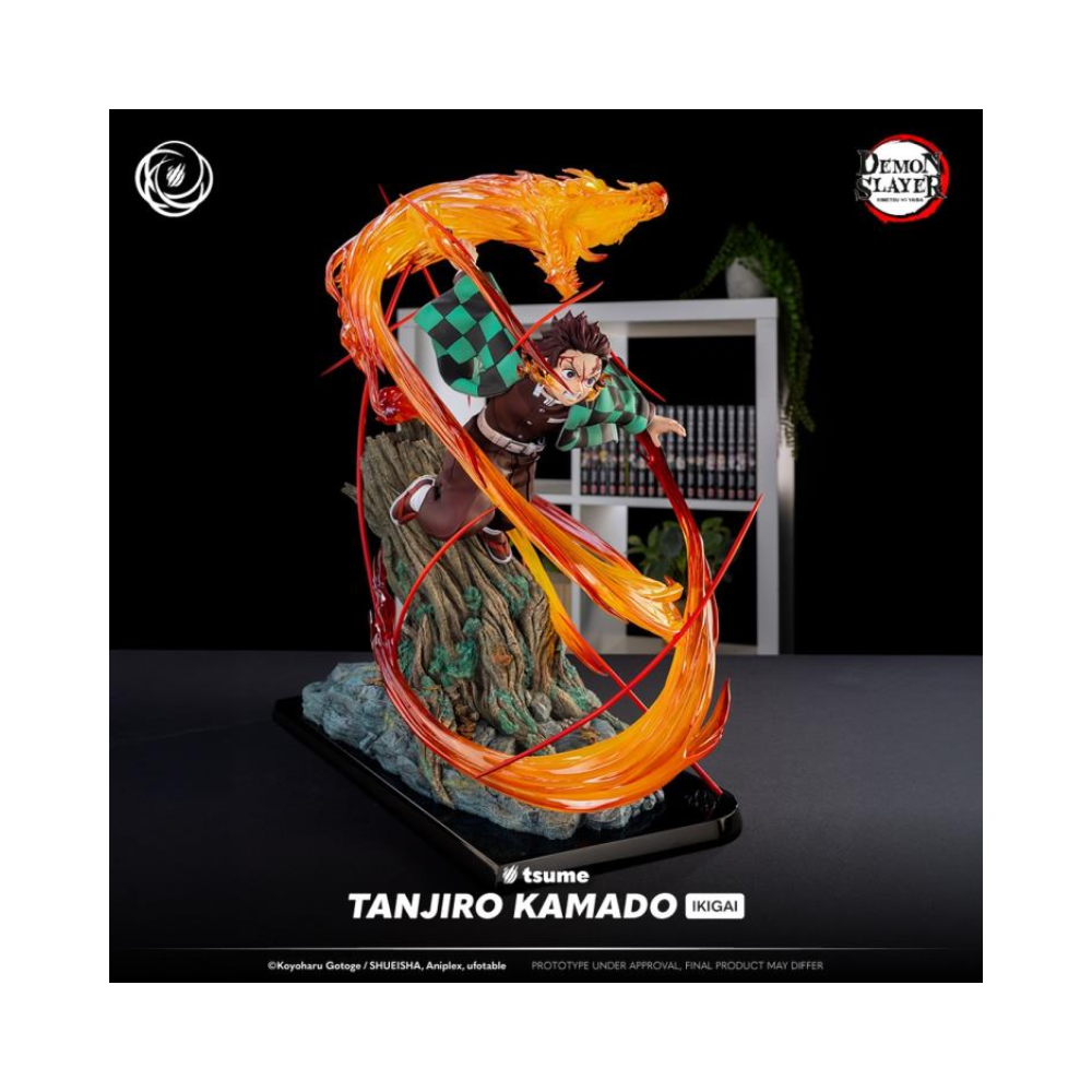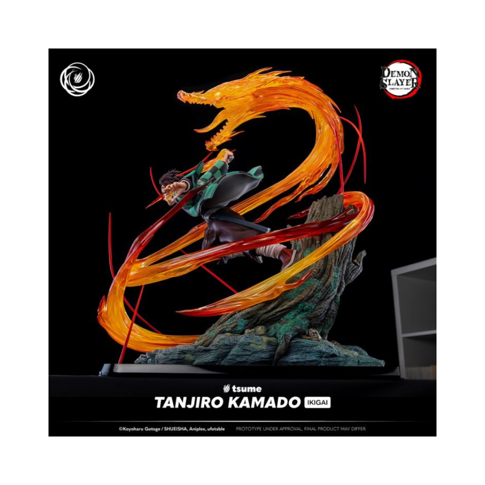 Enter the world of Demon Slayer with this Tanjiro Kamado Ikigai statue. Be transported right into the heart of the action, recreating one of the anime's most intense scenes. Facing Rui, a formidable member of the Twelve Demon Moons, Tanjiro unleashes a spectacular technique, the Hinokami Kagura.