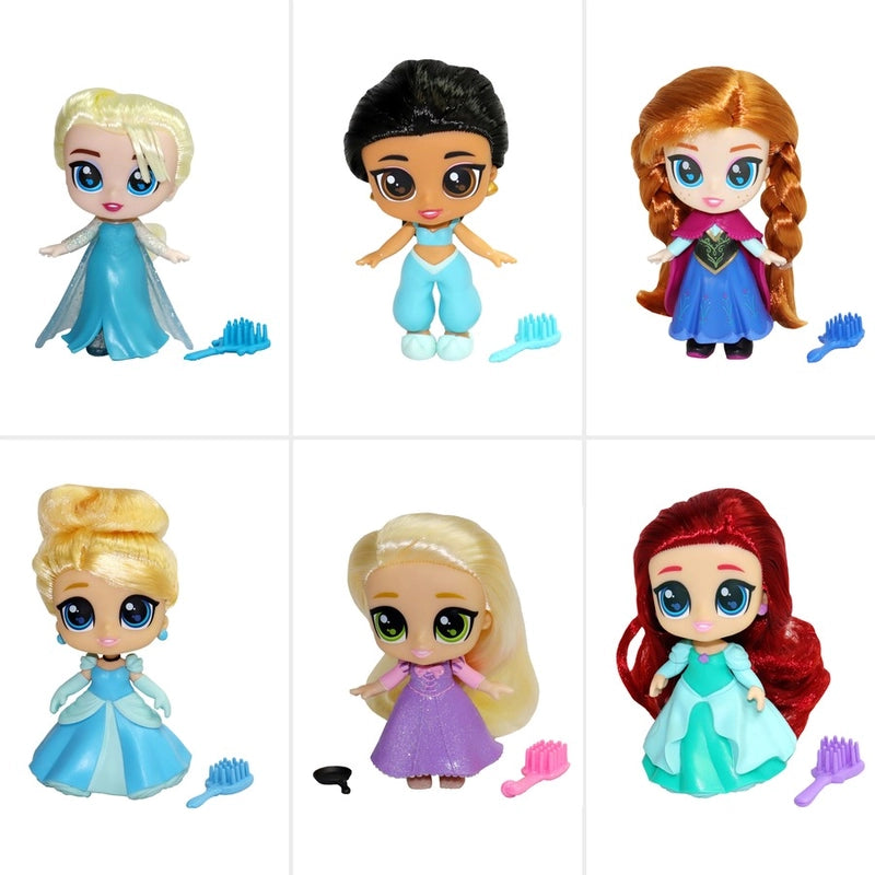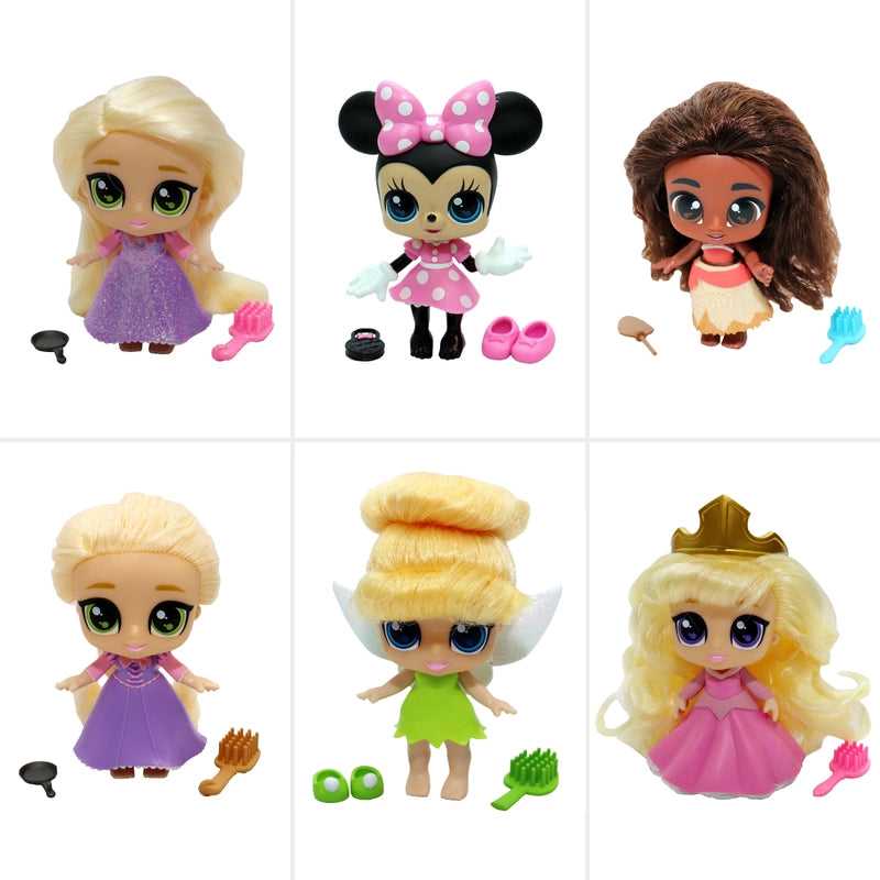 Receive one figure and two mystery gifts: there's Tinkerbell, Rapunzel, Minnie, Elsa, Ariel, Cinderella, Moana, Jasmine, Aurora, Anna, and a RARE Glitter Rapunzel to be collected!