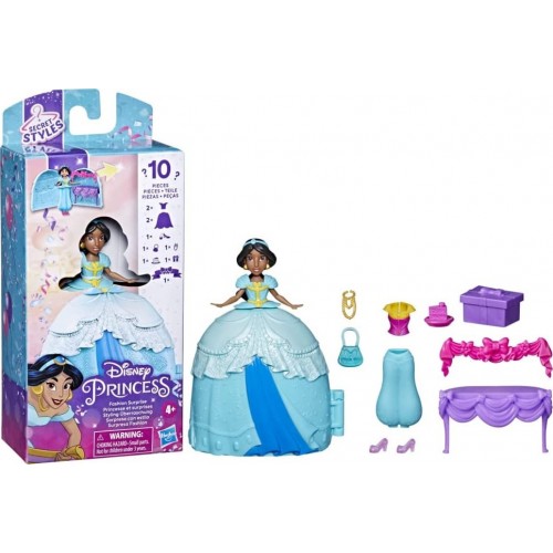 THE SKIRT OPENS AND REVEALS A ROOM: Open Jasmin's dress to discover a hidden room in which there is a table. Accessories can be stored inside the dress when finished playing. JASMIN: The set includes a 8cm doll, 2 clothes, shoes, a necklace and a purse. Recommended age: From 4 years old. DOLL AND 10 PIECES: In addition to the doll, apparel and accessories, the set includes a table, an ornament, a cake and a gift box to imagine Jasmin organizes a party for his friends. SECRET STYLES COLLECTION: Collect other dolls and playsets from the Secret Styles line with characters like Aurora and Rapunzel. (Sold separately. Subject to availability)