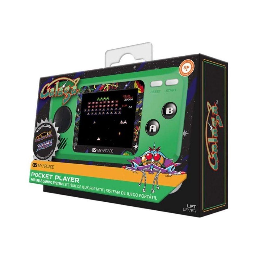 Features fully playable 8-bit versions of the out-of-this-world classics, GALAGA™, GALAXIAN™, and XEVIOUS™. My Arcade’s signature Pocket Player has a full-color display and is fine-tuned for hours of play through its emphasis on ergonomics and compact design.