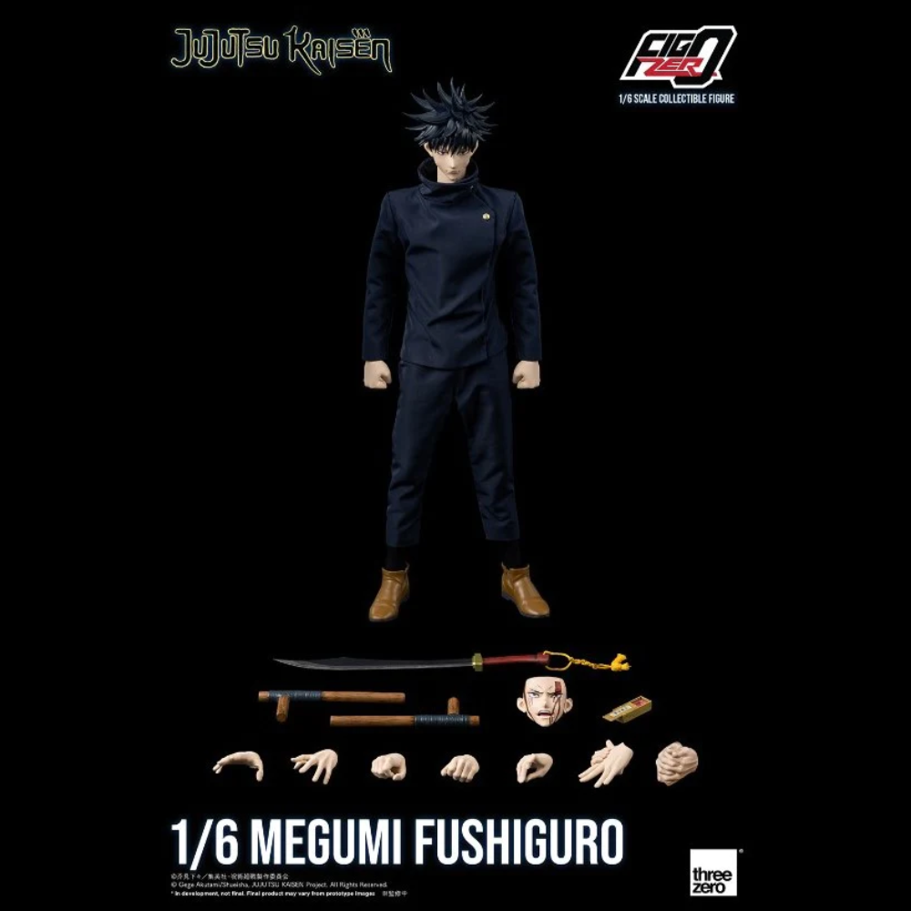 The FigZero 1/6 Megumi Fushiguro collectible action figure is about 11.6 inches (29.6 cm) high. The head is carved by well-known prototyper Ryo Takagi. The whole body has more than 32 movable joints. The main materials include PVC, ABS and cloth.