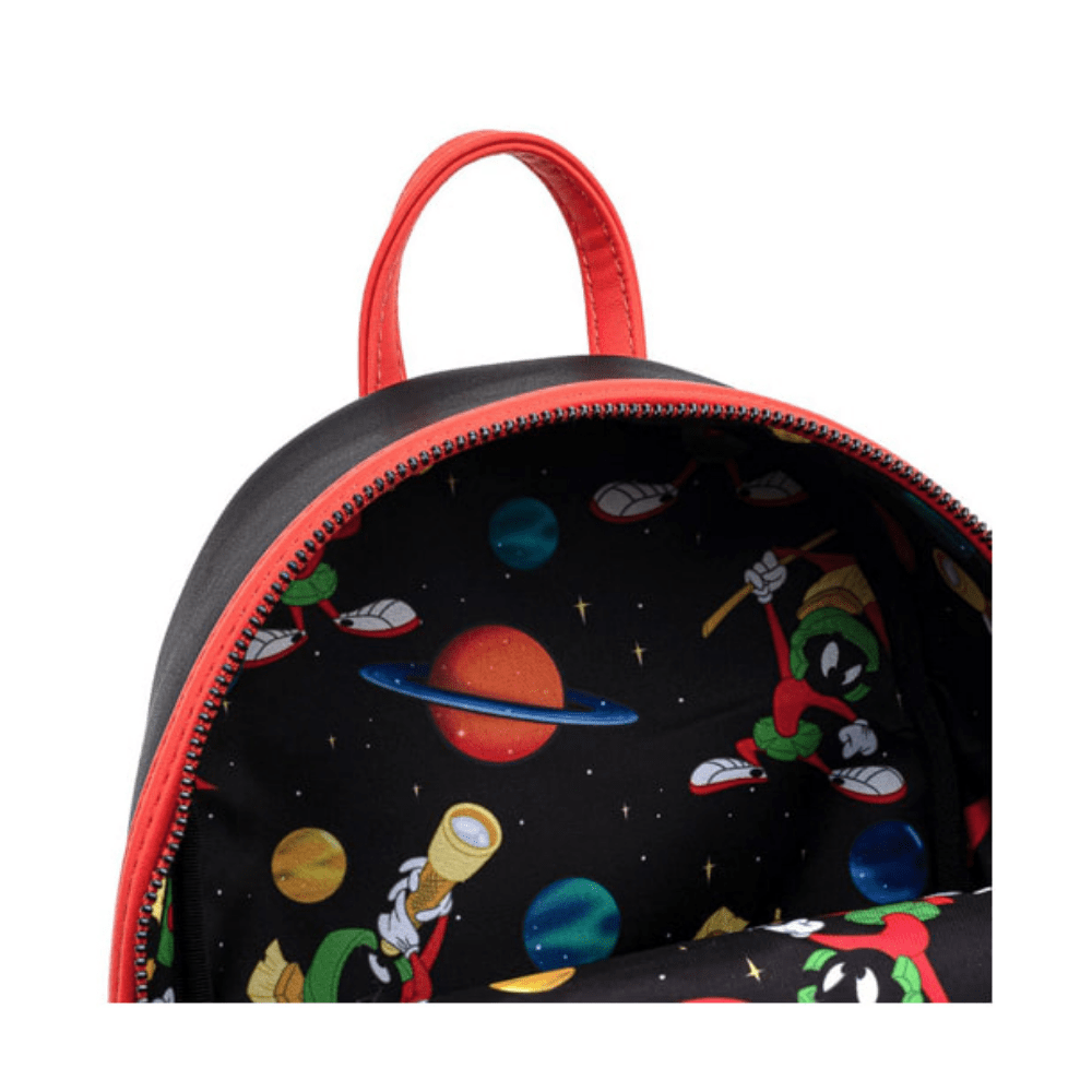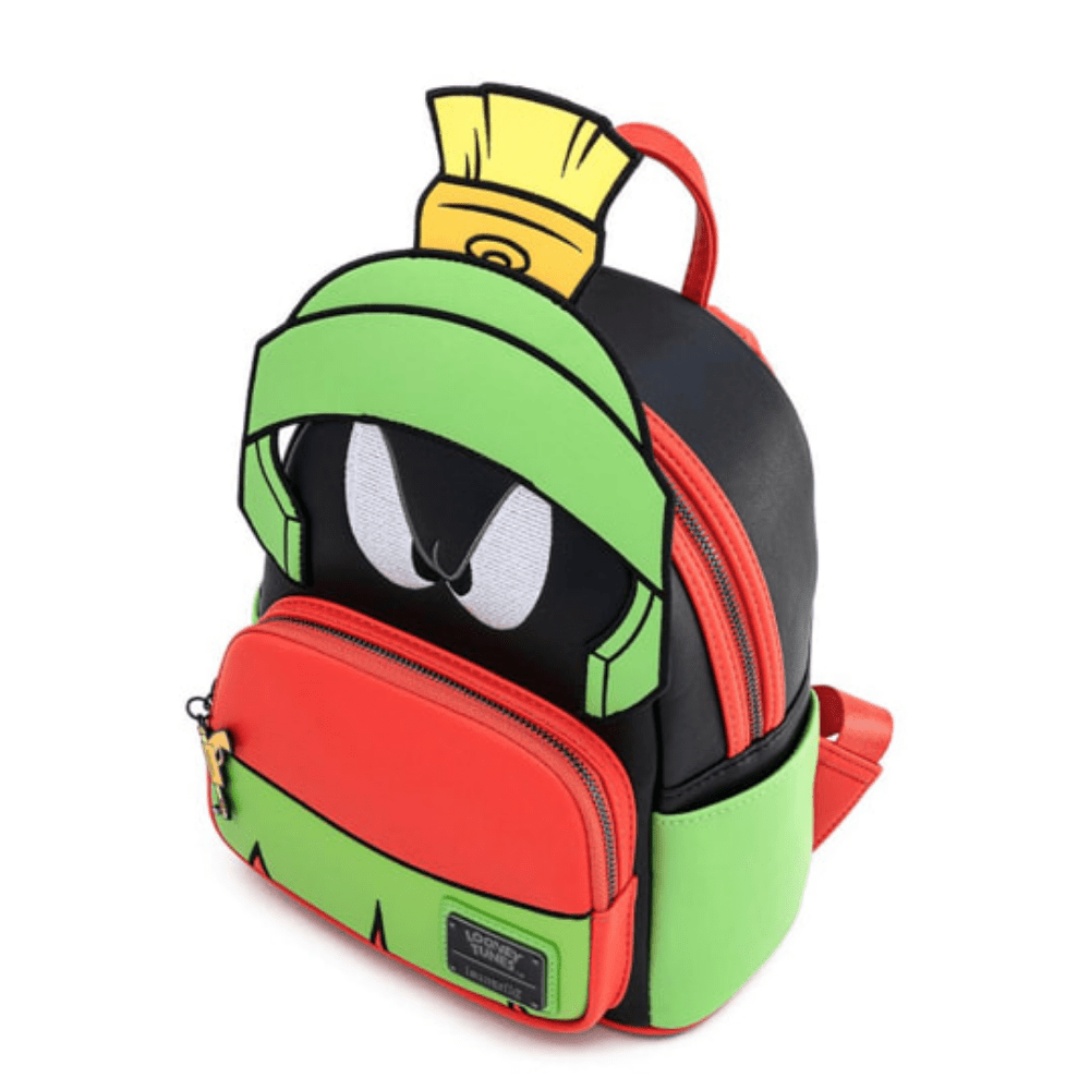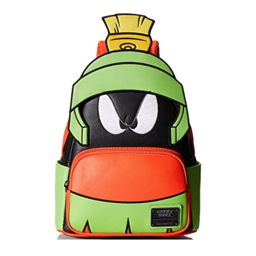 Yes, your eyes are not deceiving you!!! We are not partnering with Looney Tunes. We are out of this world excited to present our first ever Looney Tunes collection featuring our favorite alien.... Marvin the Martian. "Isn't that delightful." This faux leather mini backpack includes applique, printed, rubber charm and metal plaque details. Check out the back print.... "Where's the kaboom?"