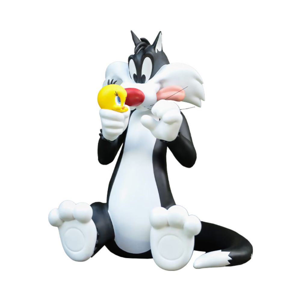 Sylvester (also known as Sylvester James Pussycat, Sr.) and Tweety are two characters who first officially began appearing in the Looney Tunes and Merrie Melodies cartoons on television in the 1940's. They are often depicted as bitter enemies while avoiding the watchful eye of their elderly owner Granny. Sylvester has the honor of starring in more Emmy award-winning cartoons than any other starring Looney Tunes character! Their antics continue even today, allow audiences of all ages to enjoy the antics of these two mischievous animals.