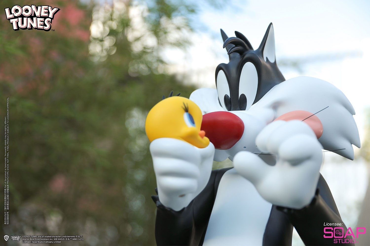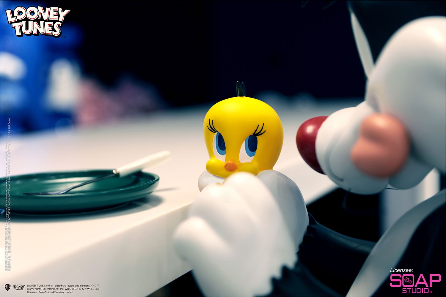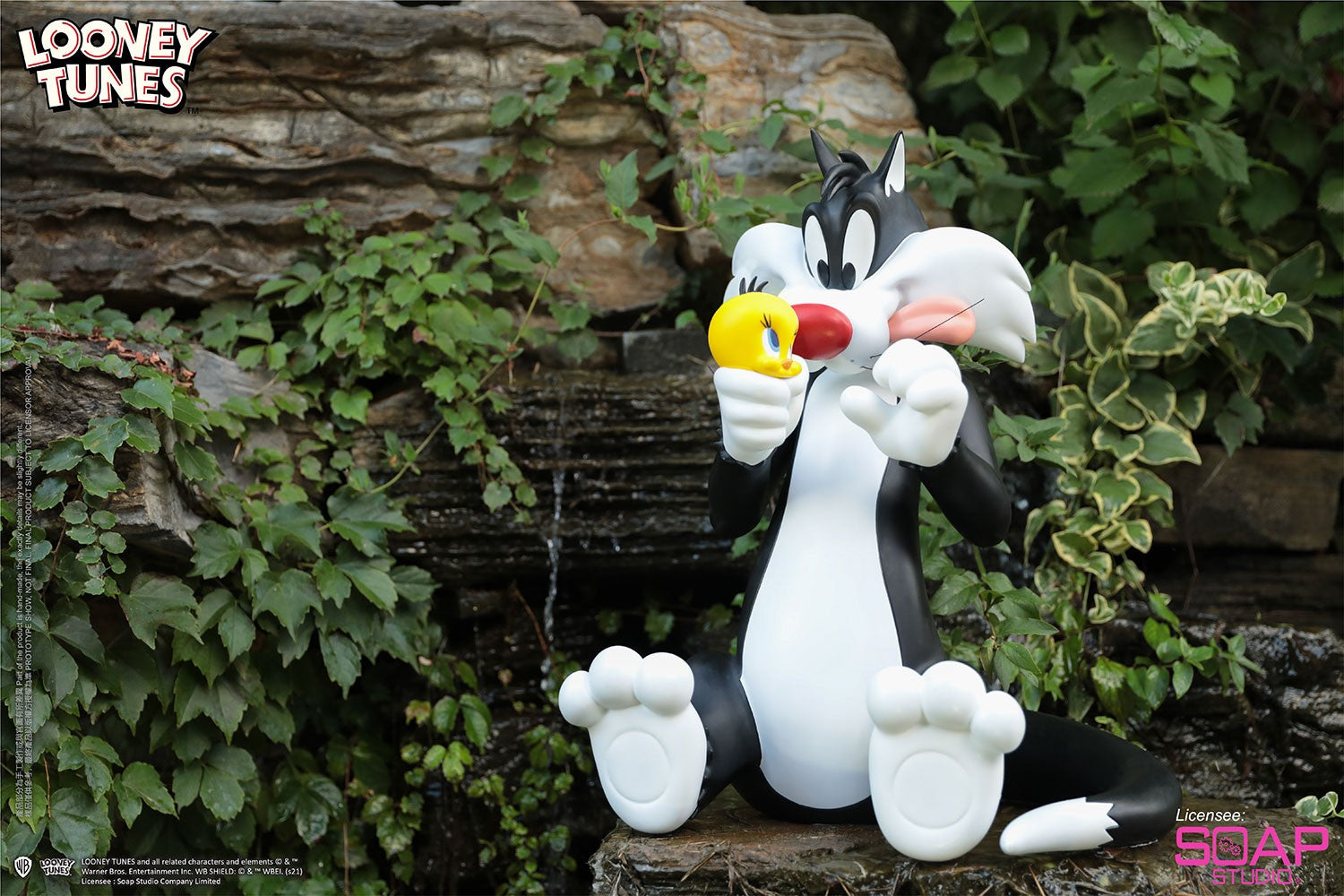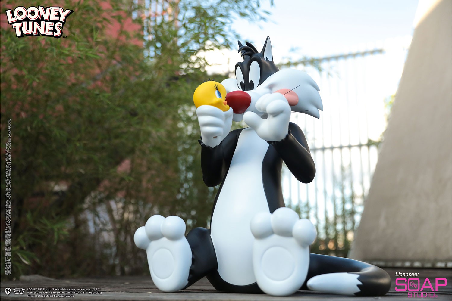 The Sylvester & Tweety Sweet Pairing Statue features the pair during what is sure to be a temporary victory for Sylvester. Tweety is captured, gripped not unlike an ice cream cone as Sylvester contemplates what to do next with the bird. Little does he know, all good plans go awry...