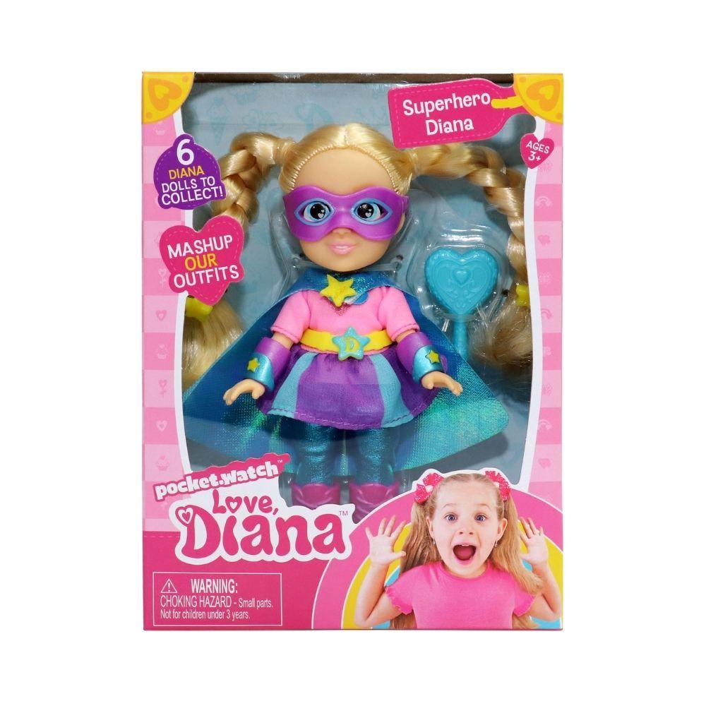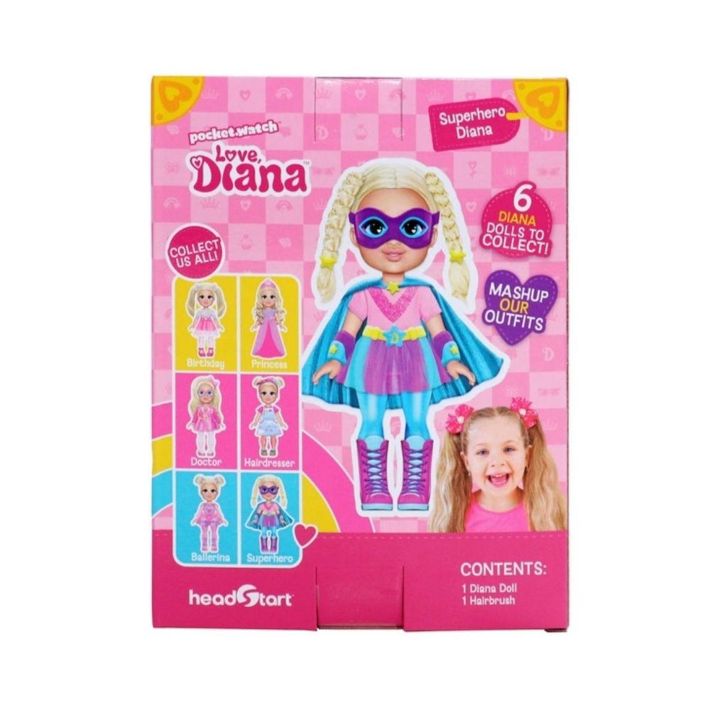 Collect all the dolls in the new Love Diana Mini dolls range. Their interchangeable outfits and accessories mean that you can make your own mashup fashions just like Diana! There are 6 Love Diana Mini dolls to collect. A Princess, a superhero, a doctor, a hairdresser and a birthday girl doll. (Each sold separately)
