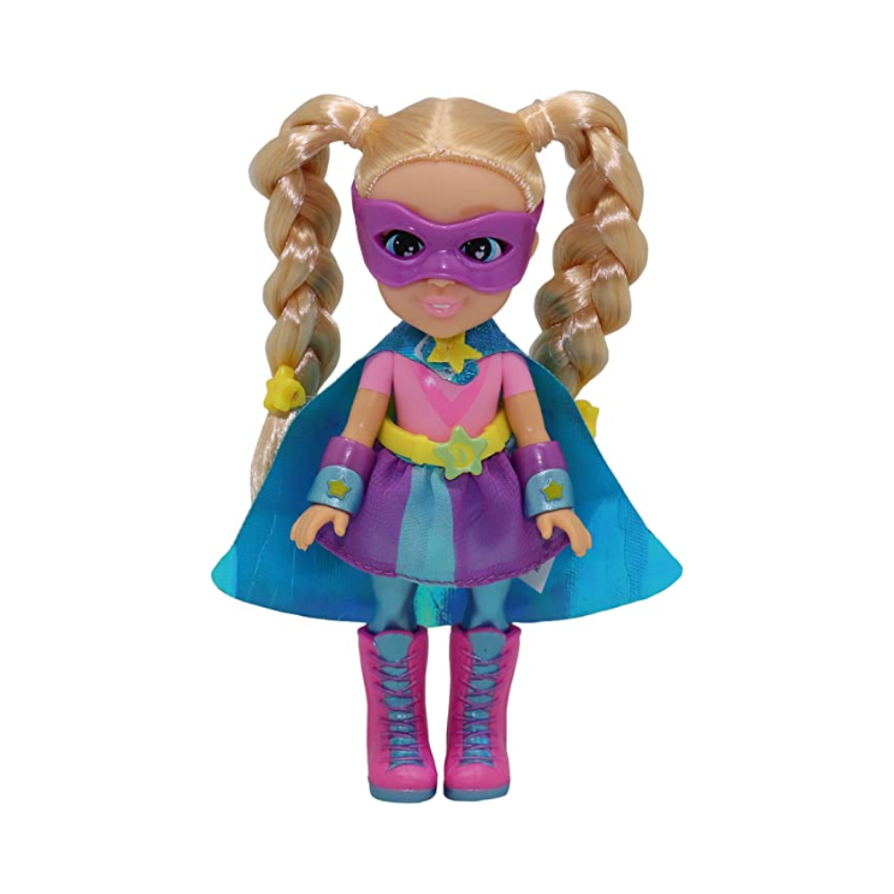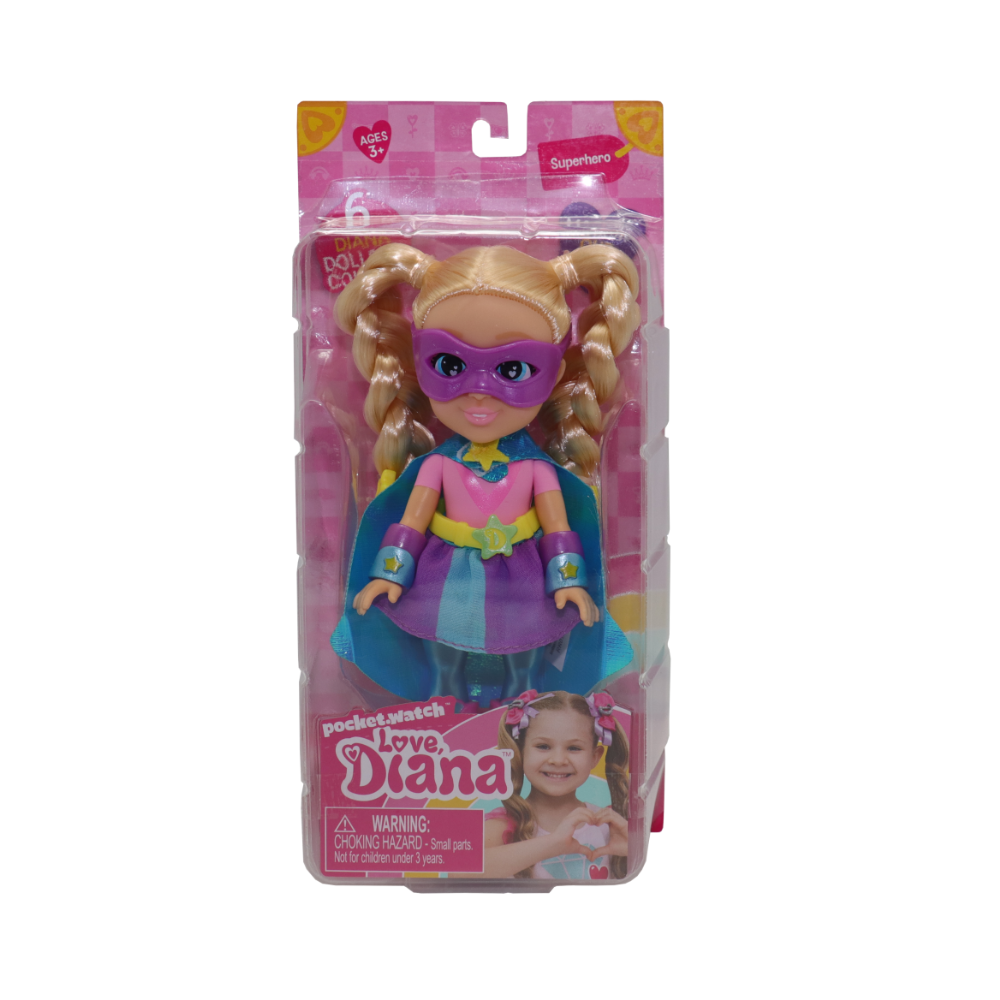 Young girls will enjoy playing with the Love Diana Value Superhero Doll that measures 15 cm tall Diana is ready for action with her amazing cape, skirt and superhero mask The doll long blonde hair is styled in pigtail plaits and can be brushed in different ways Kids can collect all 5 Diana dolls from the collection videos.