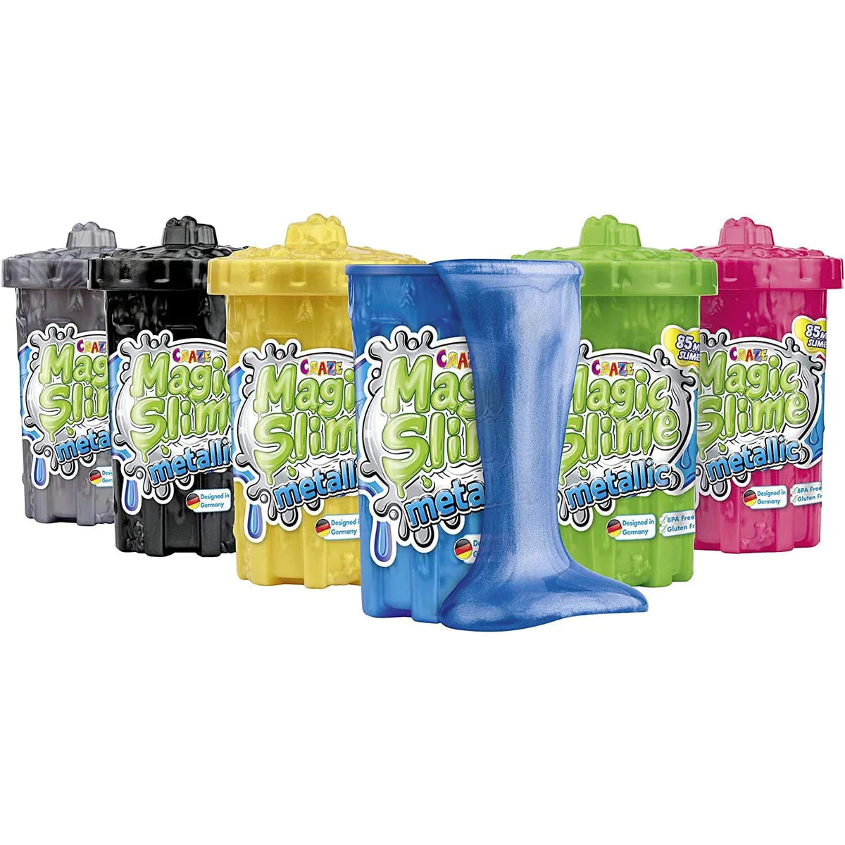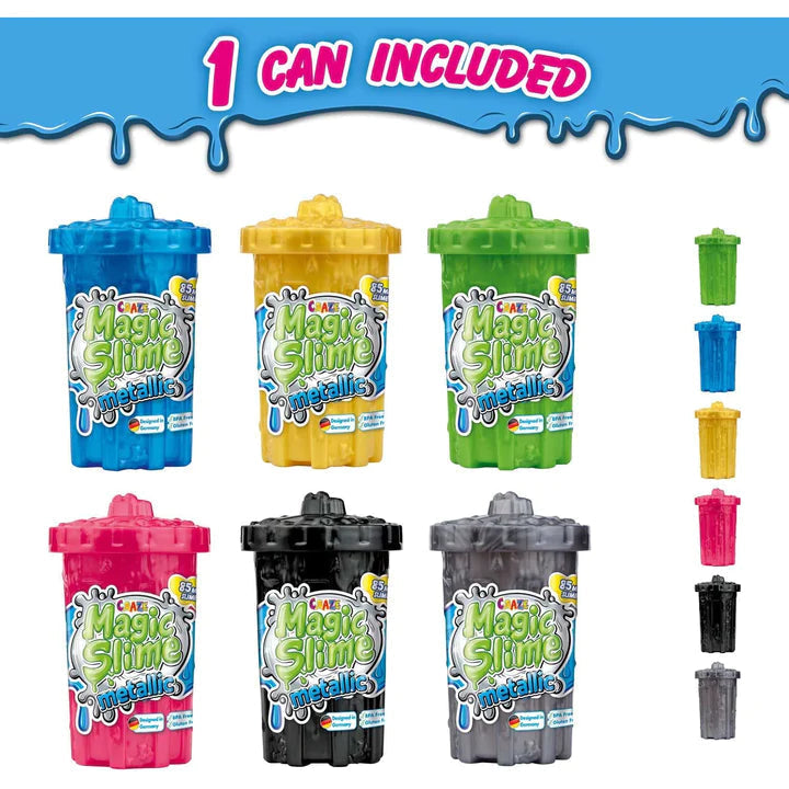 With the CRAZE Magic Slime slippery fun is guaranteed to be inevitable! The colorful slime can be pressed, pulled or squeezed and is available in 6 different metallic colors. Each sold separately and subject for availability. CRAZE Magic Slime is completely odorless, BPA and gluten free. Content: 85ml Magic Slimy in a Trash-Can.