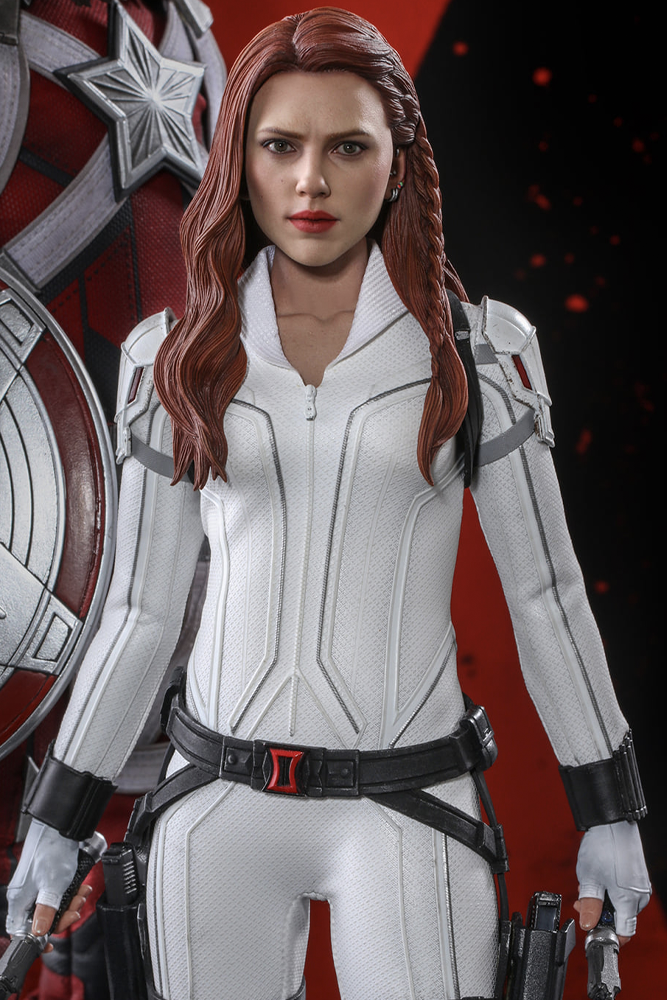 Beautifully crafted based on the screen appearance of Scarlett Johansson as Natasha Romanoff/Black Widow in the production of the same title, the figure features a newly developed head and hair sculpture with delicate workmanship, finely tailored white tactical uniform, highly-detailed weapons including a pair of standard batons and a pair of articulated batons with 3 types of interchangeable tips enable different battling styles, pistols, multiple pieces of interchangeable hands for signature poses, and a movie-themed figure stand.