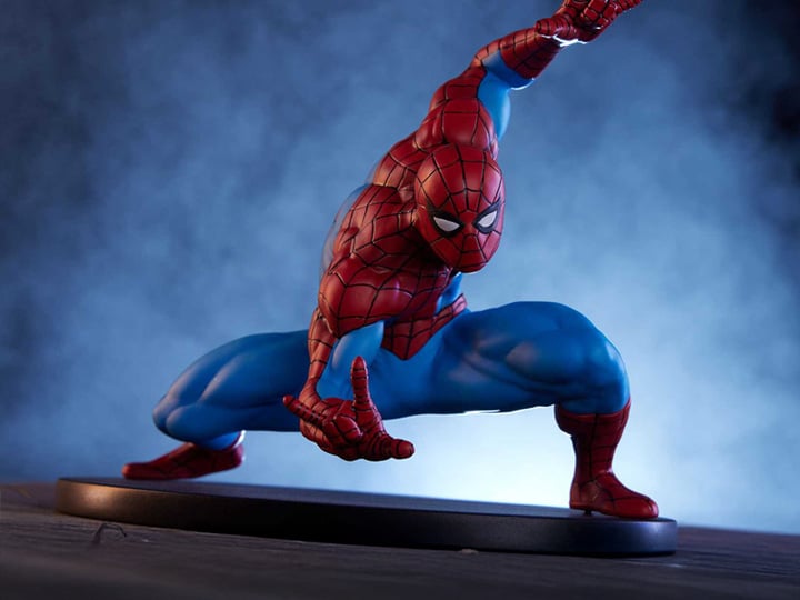 Spidey’s web shooters are at the ready in his dynamic low stance, ready to pounce at any second to stop villains in their tracks. Every detail of Spider-Man’s signature red and blue costume is recreated in stunning detail. The Classic Edition costume features smaller eyes and a unique red and blue deco representative of his earliest appearances. The exaggerated pose is anchored by his wide stance, firmly planting him in the path of any would-be evil-doers.