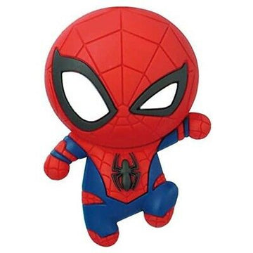 Spider-man with a big head as a 3D Foam magnet getting ready to fight crime, but of course always friendly.