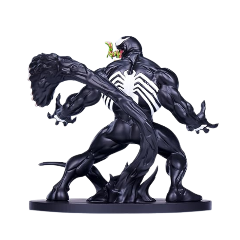 The Venom statue is depicted in his classic black and white look, with a disgusting green slime deco to add some pop to his gruesome grin!