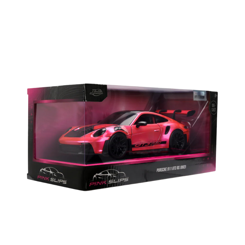 Experience the thrill of high-speed racing with this stunning Pink Slips Porsche 911 (992) GT3RS 1:24 diecast model by Jada. Meticulously crafted with exceptional detail, this collectible captures the iconic design and aggressive styling of the legendary sports car. Perfect for enthusiasts and collectors alike, this die-cast replica features authentic proportions and premium finishing that brings the performance and prestige of the Porsche GT3RS to life. Add this impressive piece to your collection and celebrate automotive excellence.