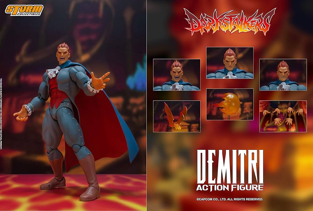 From the video game Darkstalkers, Storm Collectibles introduces a 1/12 scale figure of Demitri Maximoff. This highly detailed and fully articulted figure is sure to please any fan of the video game.