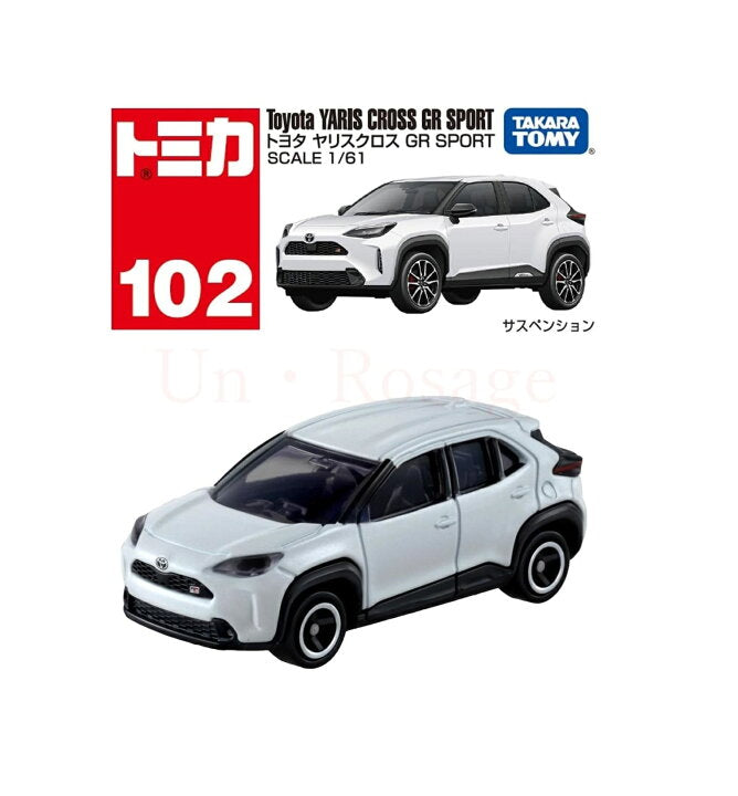 Introducing the No.102 Toyota Yaris Cross GR SPORT Diecast Model Car by Takara Tomy Tomica! Bring the excitement of this sleek and sporty car to your collection. With its diecast construction, realistic design, and intricate details, this model is sure to impress. Perfect for car enthusiasts and collectors alike.