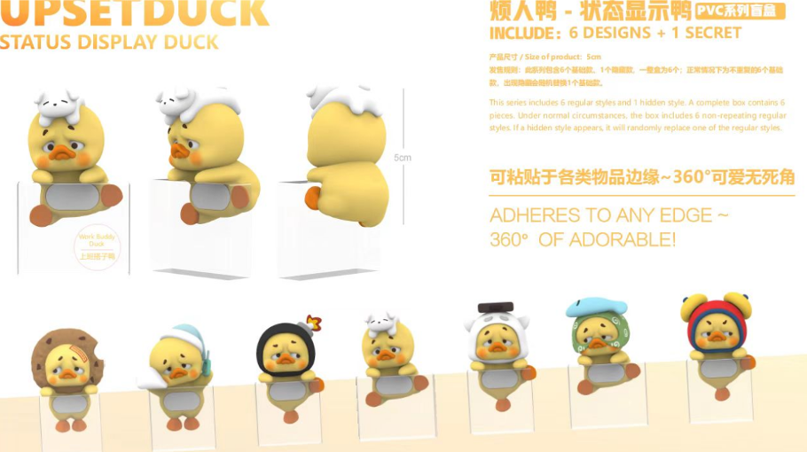 Discover the charm of Upsetduck's Status Display Duck Blind Box—a delightful collectible that brings personality to any space. Each box contains a unique duck figure with expressive status displays, perfect for desk décor, shelf arrangements, or gifting to fellow collectors. The element of surprise makes unboxing an exciting experience, while the adorable designs appeal to both casual fans and dedicated enthusiasts. Add a touch of whimsy and character to your collection today.